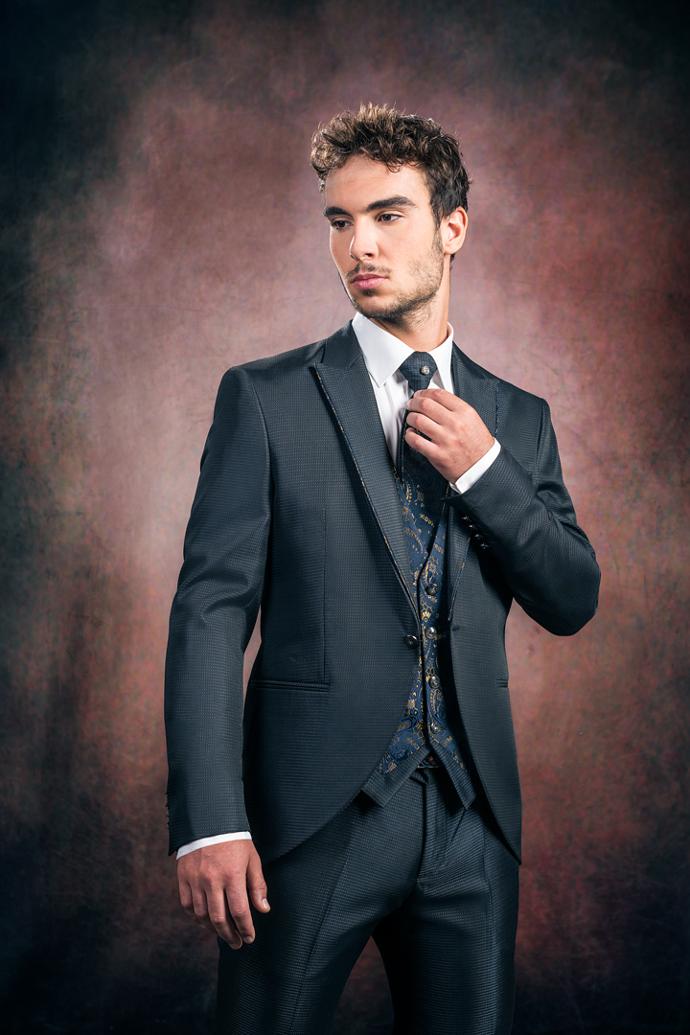 Nuestros trajes, confeccionados con los más finos tejidos, están diseñados para resaltar la distinción y el estilo único de aquellos que buscan excelencia en su gran día.