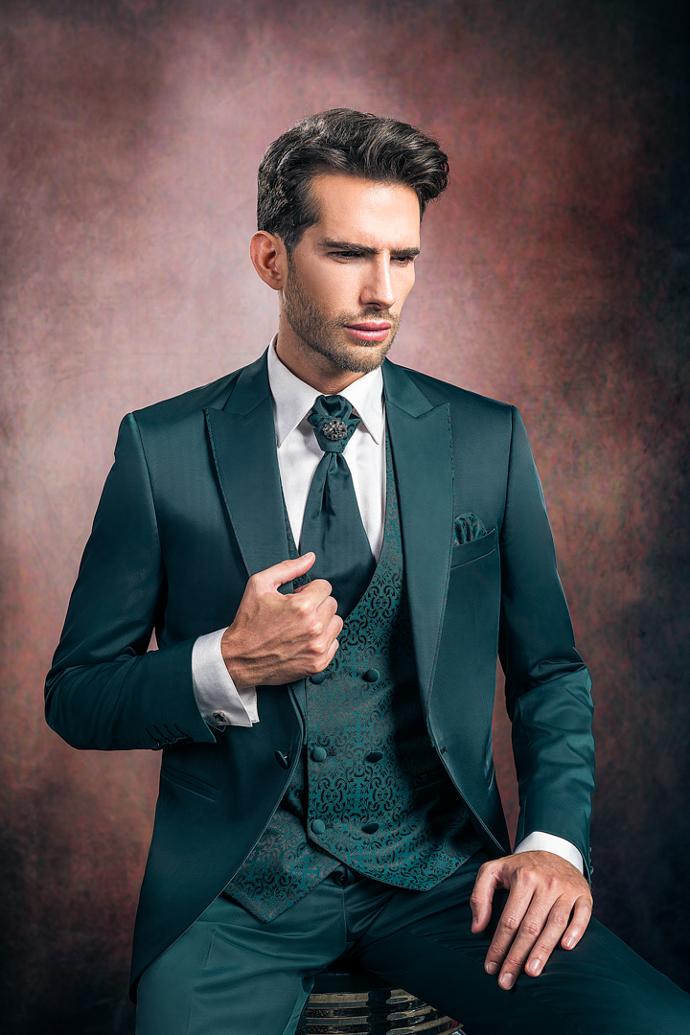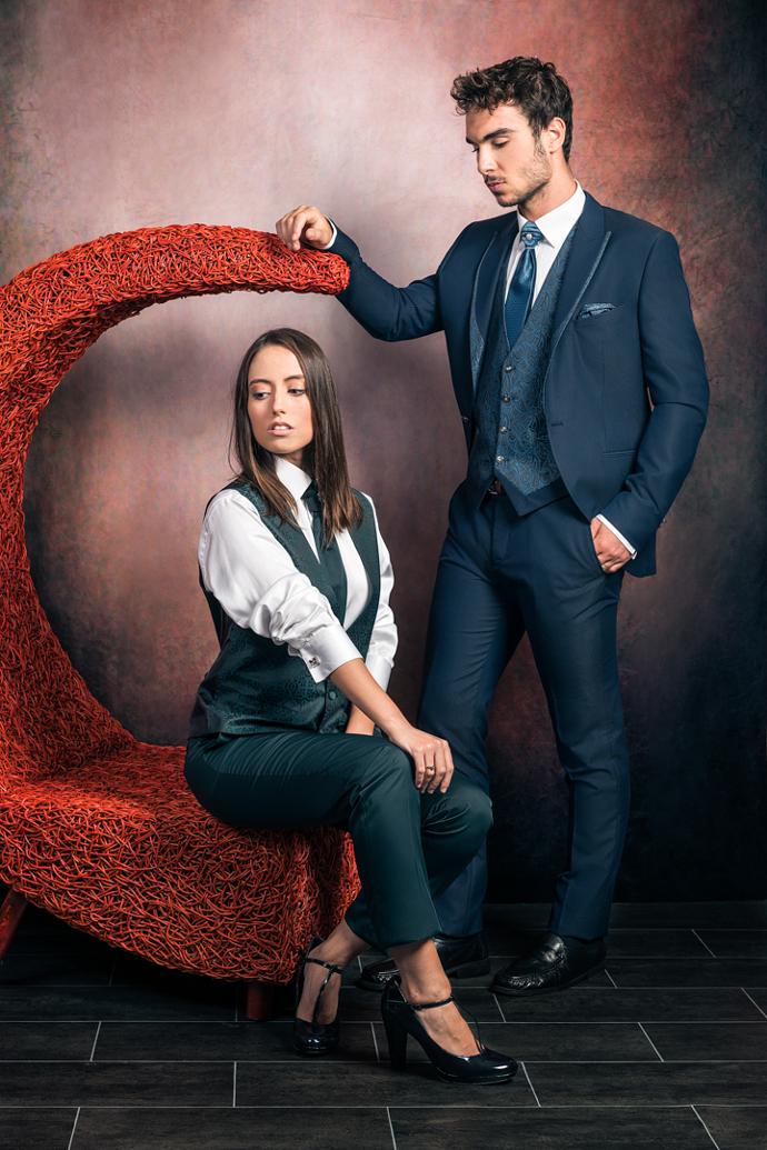 Nuestros trajes, confeccionados con los más finos tejidos, están diseñados para resaltar la distinción y el estilo único de aquellos que buscan excelencia en su gran día.